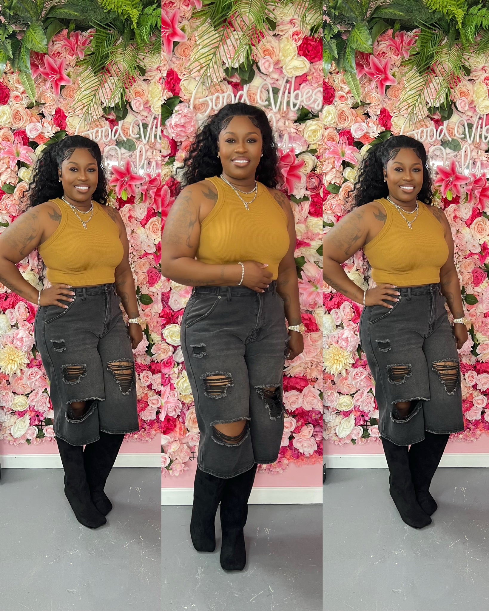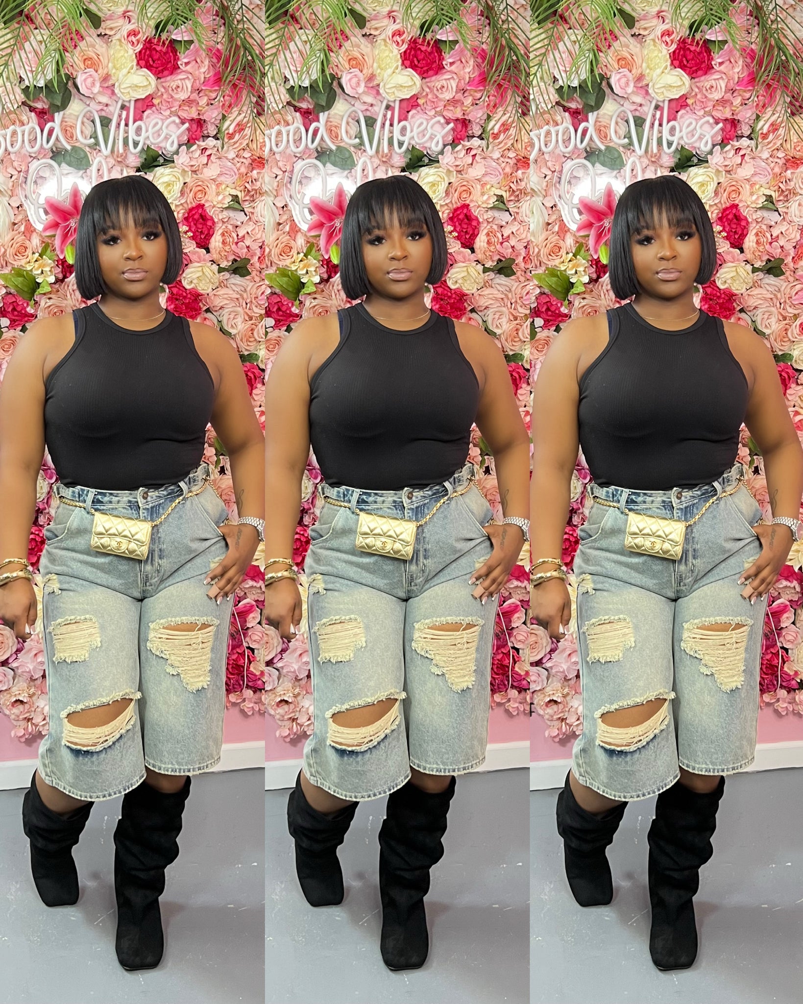 WAIST TRIM DISTRESSED WIDE LEG JORTS